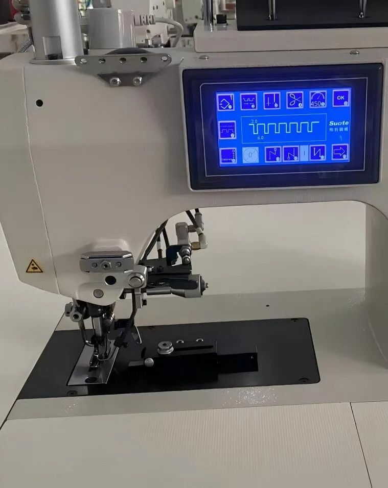 1、配備液晶顯示屏,圖像清晰。操作人員能直觀看到各項參數(shù),如縫紉長度、針數(shù)、針距等,快速調整,提高工作效率。